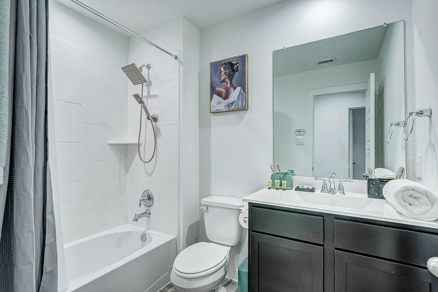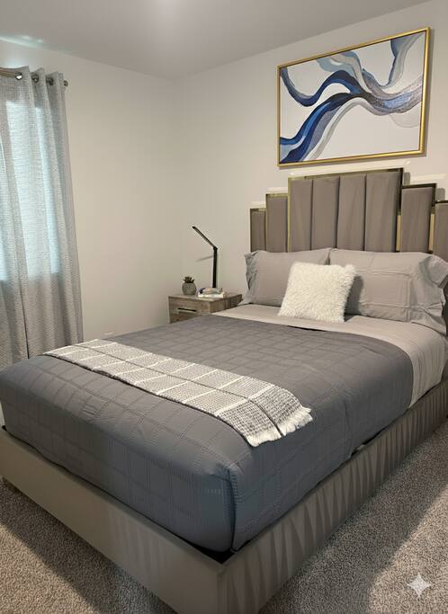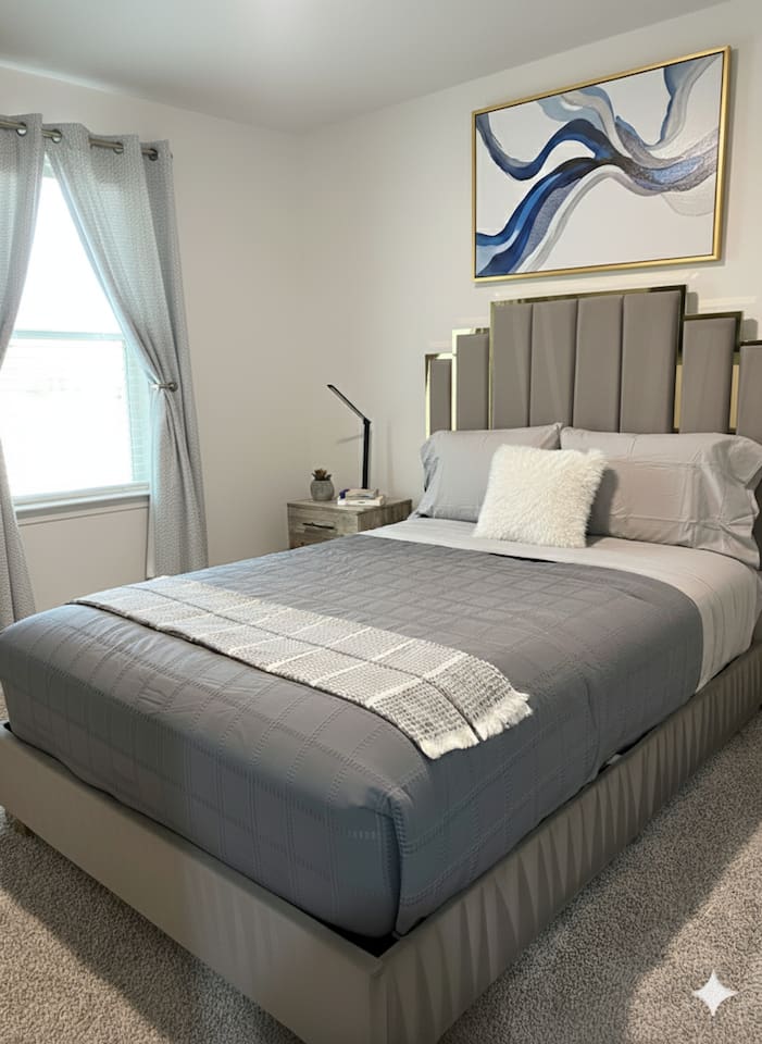BEDROOMS: This home is ideal for up to 7 guests. ✔ Master Bedroom: 1 King Bed (Unwind in a King Bed, enjoy your favorite shows on the flat-screen TV, and indulge in the private bathroom with a sleek walk-in glass shower.) ✔ Bedroom 2: 1 Queen Bed and Flat-screen TV. (Snuggle up in a comfy Queen Bed for a great night’s sleep) ✔ Bedroom 3: 1 Queen Bed and Flat-screen TV. (Snuggle up in a comfy Queen Bed for a great night’s sleep) ✔ Shared Bathroom: Soak your worries away in the walk-in tub, shared between Bedrooms 2 and 3. ✔ Chef Style KITCHEN: Cook up a storm in the fully-equipped kitchen, boasting a spacious white granite countertop island. You'll find everything you need, from a coffee maker to a gas oven, microwave, and all the kitchen essentials. ✔ DINING SPACE: Gather around the granite dining table with seating for 6—ideal for family dinners or cozy meals with friends. ✔ LIVING ROOM: Kick back in the comfy living room with a plush sofa and a flat-screen TV for all your entertainment needs and board games for game night. ✔ LAUNDRY ROOM: Keep your clothes fresh with the washer and dryer, ready whenever you need them. Amenities: We’ve stocked up on all the essentials to make your stay easy and carefree: - Toilet Paper - Paper Towels - Trash Bags - Cleaning Supplies - Towels and Washcloths - Laundry detergent - Soap and Shampoo NB: Additional non-essential items provided may come at an additional cost, please confirm with the host. Parking: Parking is a breeze! The garage can fit 2 vehicles and an additional 2 in the driveway.