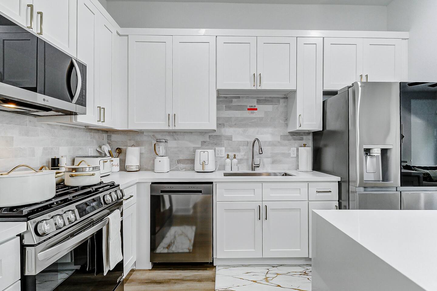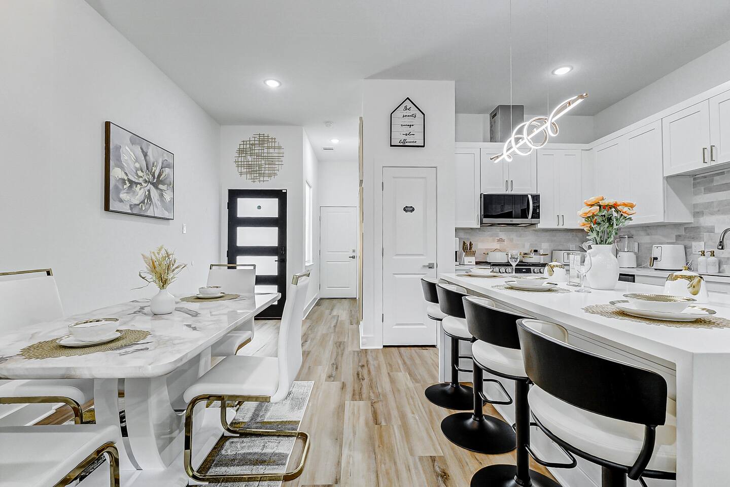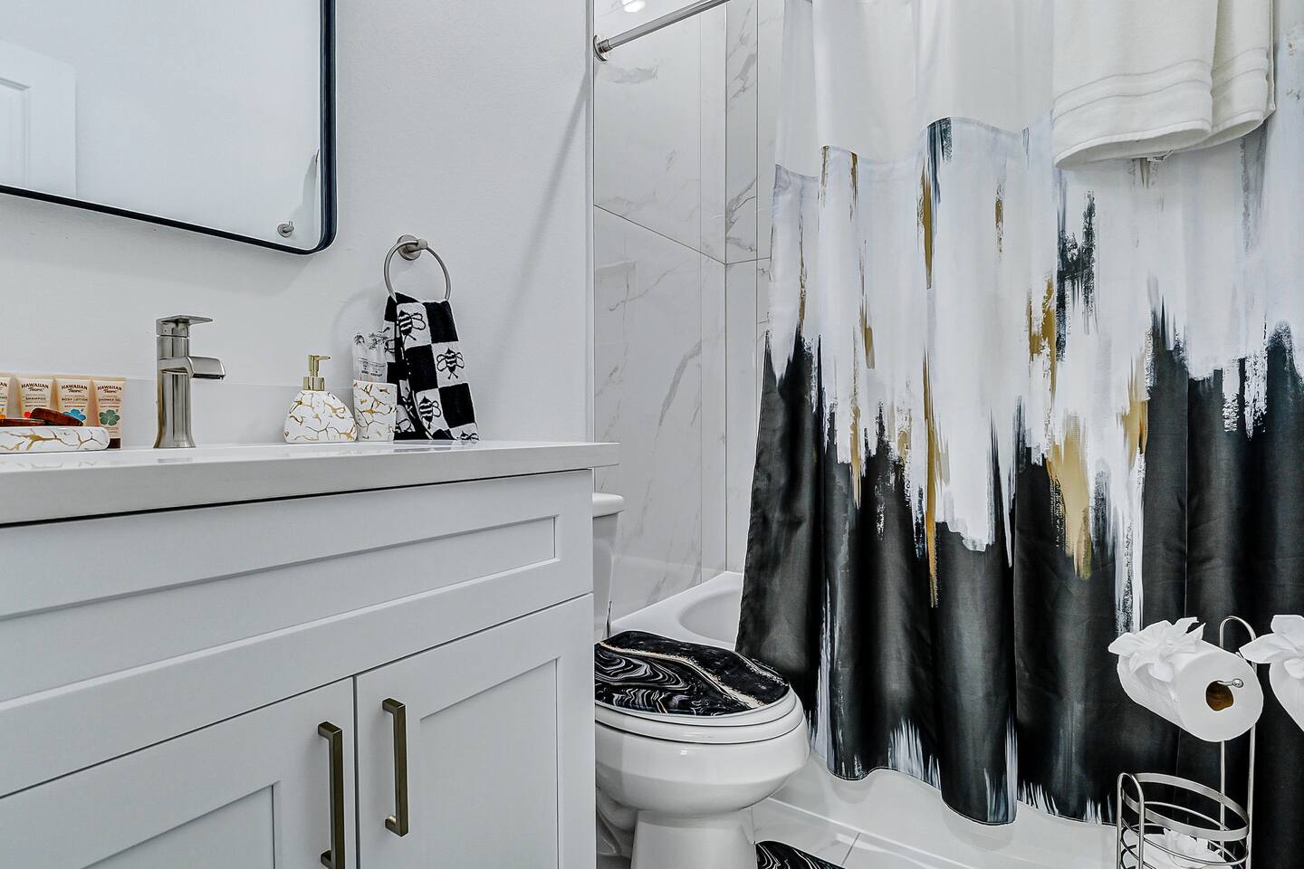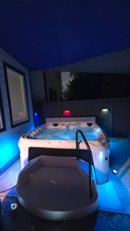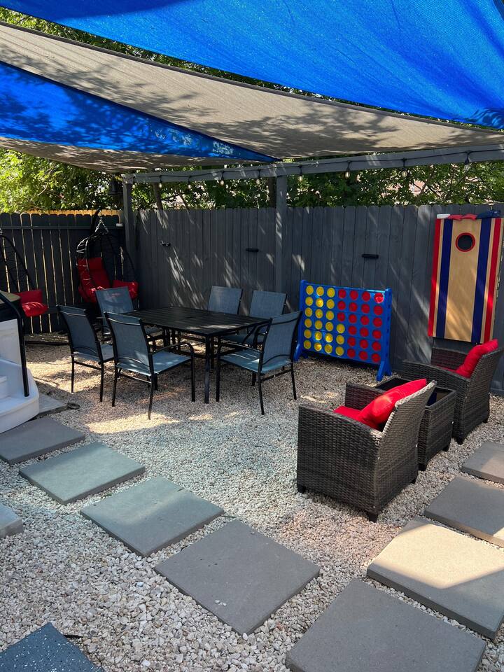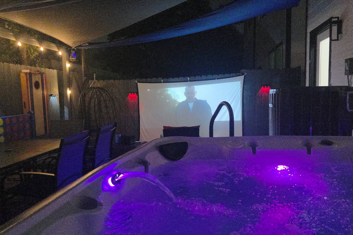 NB: Pricing is Base rate only does not include Upsells BEDROOMS(All Upstairs) This home is ideal for up to 6 guests. ✔ Master Bedroom: 1 King Bed (Unwind in a King Bed, enjoy your favorite shows on the flat-screen TV, and indulge in the private bathroom with a sleek walk-in glass shower and an elegant bathtub.) ✔ Bedroom 2: 1 Queen Bed. (Snuggle up in a comfy Queen Bed for a great night’s sleep), Smart TV and indulge in the private bathroom with elegant bathtub. ✔ Bedroom 3: 1 Queen Bed. (Snuggle up in a comfy Queen Bed for a great night’s sleep), Smart TV and indulge in the private bathroom with elegant bathtub. ✔ Chef Style KITCHEN: Cook up a storm in the fully-equipped kitchen, boasting a spacious white granite countertop island. You'll find everything you need, from a coffee maker to a gas oven, microwave, and all the kitchen essentials. ✔ DINING SPACE: Gather around the granite dining table with seating for 6—ideal for family dinners or cozy meals with friends. ✔ LIVING ROOM: Kick back in the comfy living room with a plush sofa and a flat-screen TV for all your entertainment needs and board games for game night. ✔ LAUNDRY ROOM: Keep your clothes fresh with the washer and dryer, ready whenever you need them. ✔Backyard highlights: Private hot tub, outdoor dining with string lights, cozy egg-shaped swinging chairs, outdoor games, and a full movie night setup with projector—perfect for relaxation and entertainment. Amenities: We’ve stocked up on all the essentials to make your stay easy and carefree: - Toilet Paper - Paper Towels - Trash Bags - Cleaning Supplies - Towels and Washcloths - Laundry detergent - Soap and Shampoo NB: Additional non-essential items, especially Massage Chair, Hot tub and grill provided come at an additional cost, please confirm with the host in advance to arrange payment before use. Parking: Parking is a breeze! The garage can fit 2 vehicles and an additional 2 in the driveway.