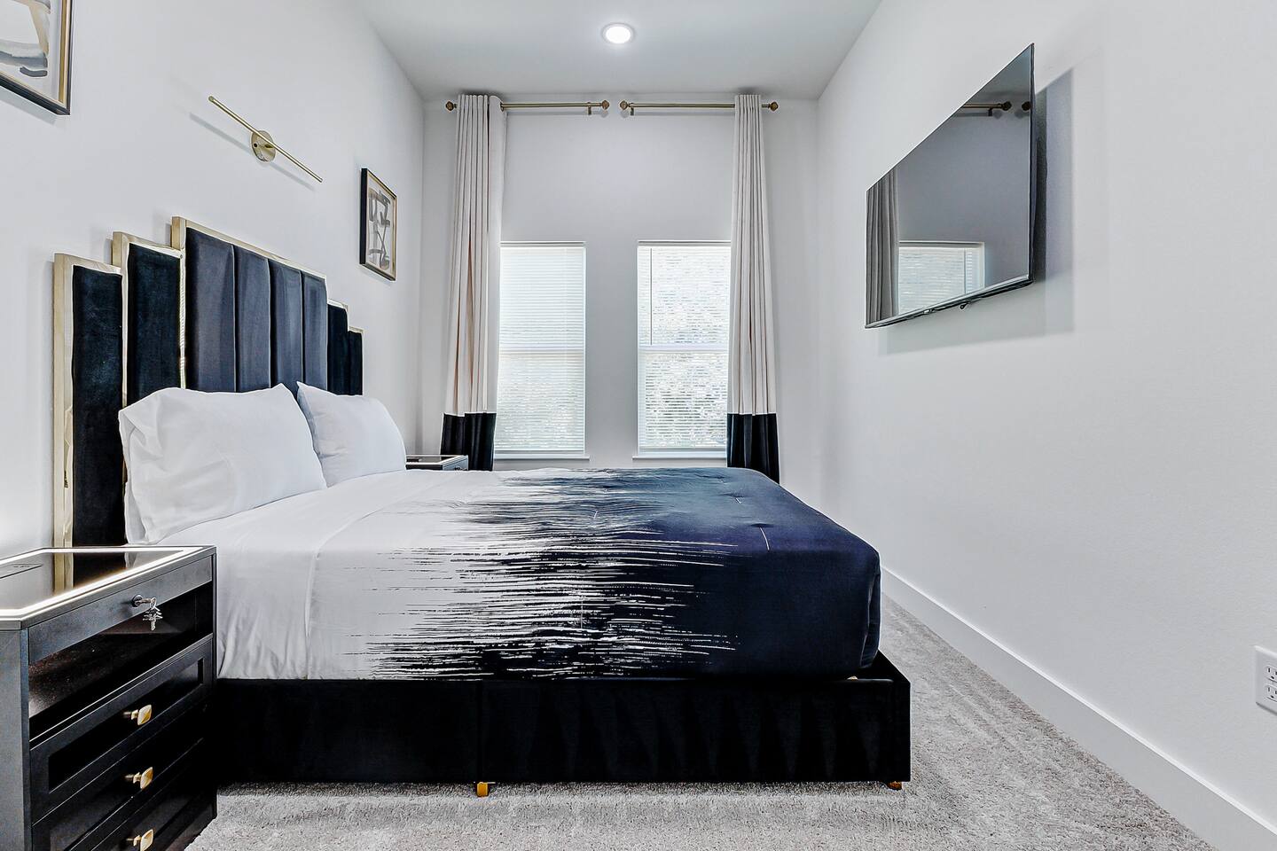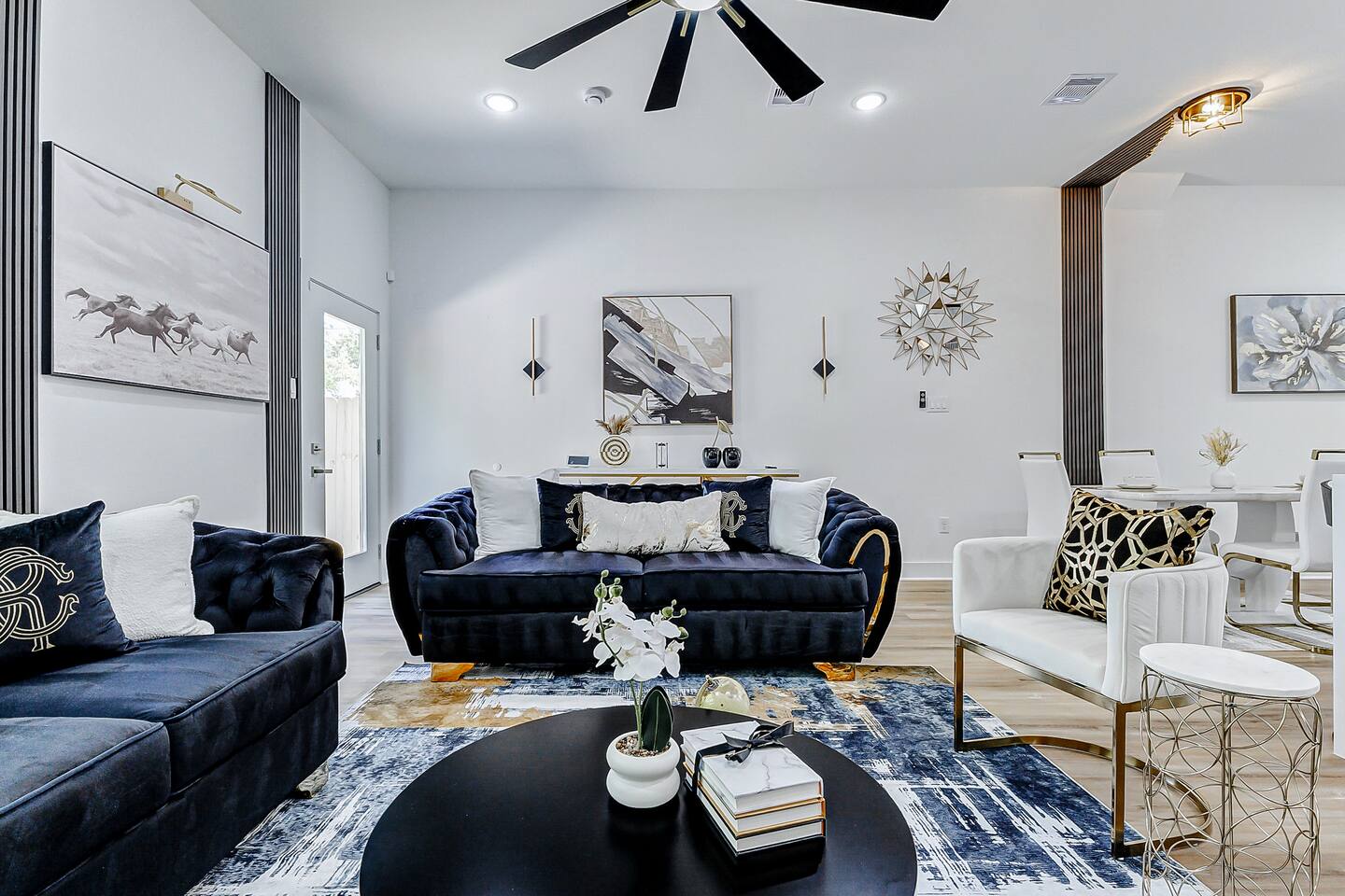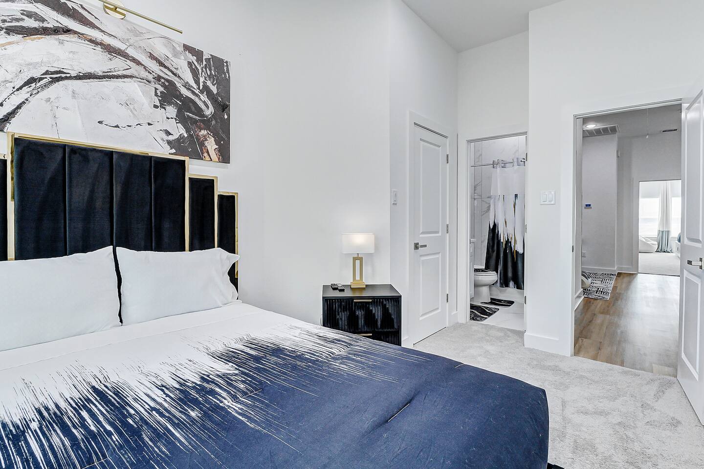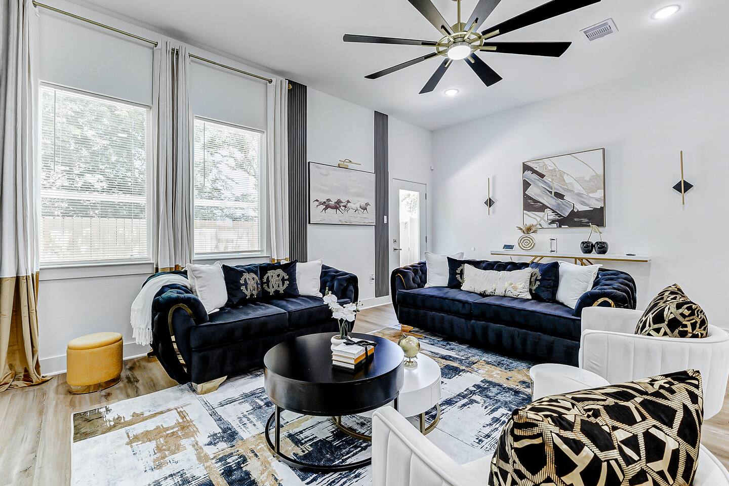 Experience the ultimate staycation with optional Premium "Upsell" (Extra Charge) hot tub and massage chair upgrades in our chic, modern Houston home. Nestled safely at the 610 and 288 intersection, this 2-story retreat features 3 bedrooms, each with its bathroom, providing comfort and privacy. Enjoy proximity to NRG Stadium, Texas Medical Center, Downtown, and Great Wolf Lodge Water Park. Whether you're exploring local attractions or relaxing, find everything you need just a moment away.