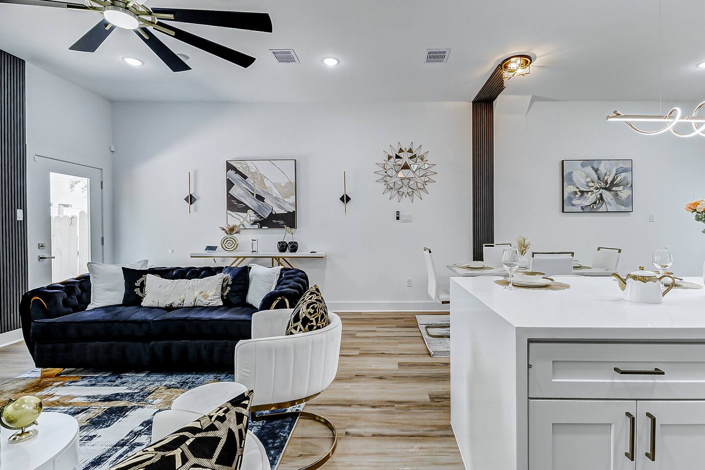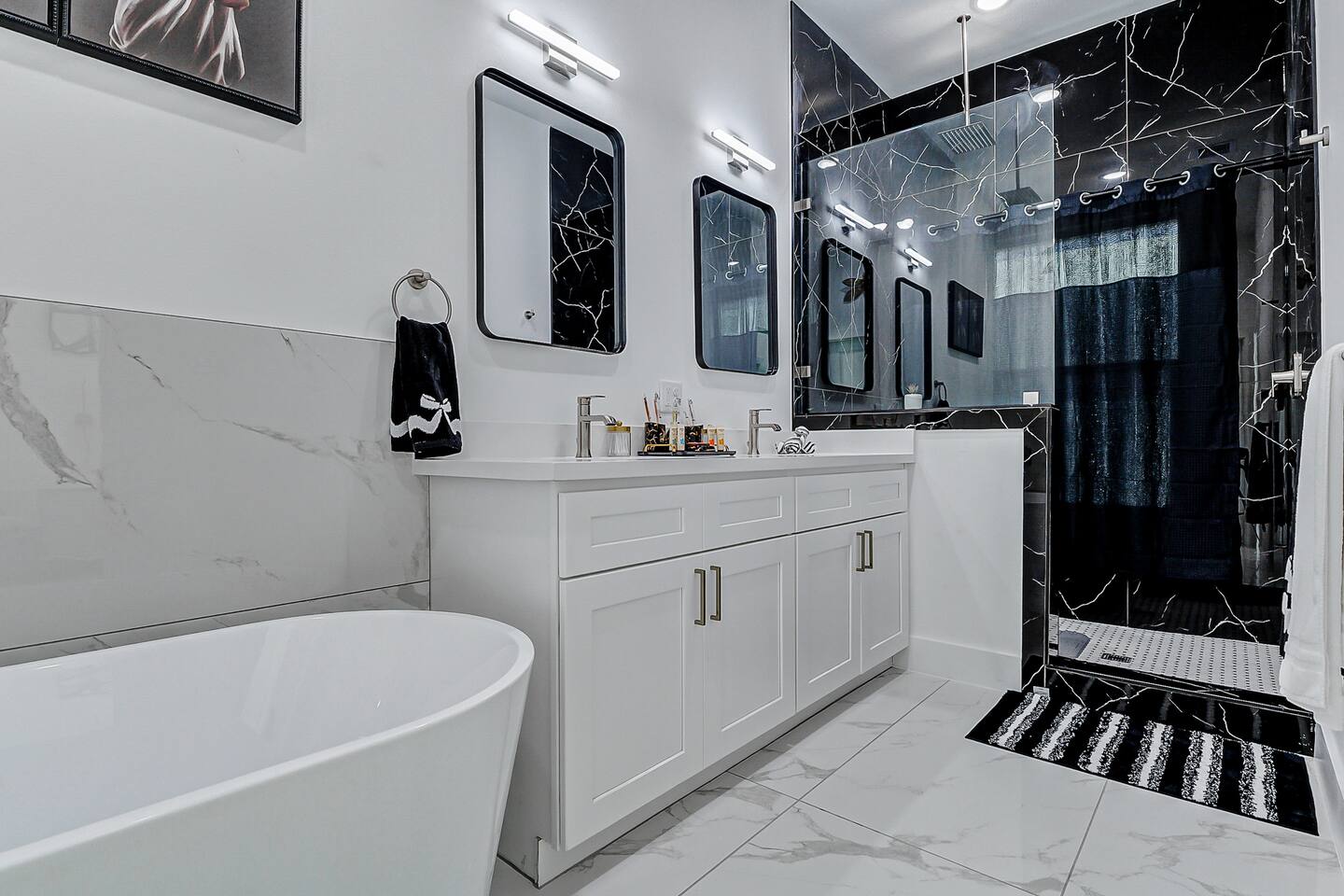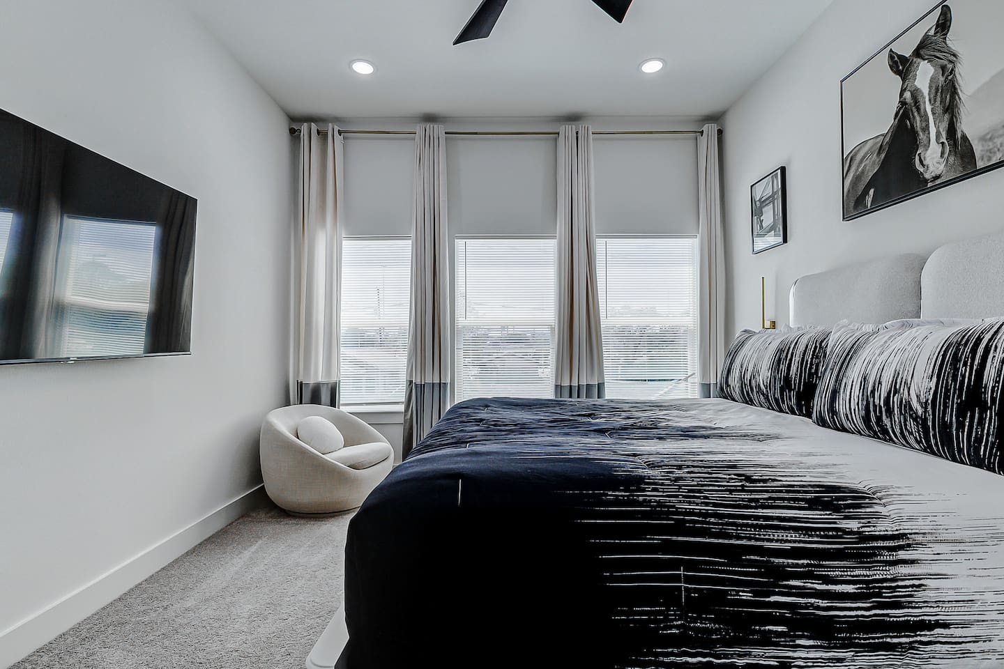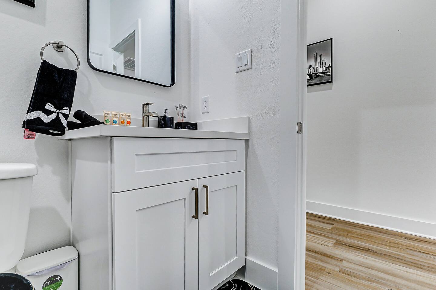 Experience the ultimate staycation with optional Premium "Upsell" (Extra Charge) hot tub and massage chair upgrades in our chic, modern Houston home. Nestled safely at the 610 and 288 intersection, this 2-story retreat features 3 bedrooms, each with its bathroom, providing comfort and privacy. Enjoy proximity to NRG Stadium, Texas Medical Center, Downtown, and Great Wolf Lodge Water Park. Whether you're exploring local attractions or relaxing, find everything you need just a moment away.