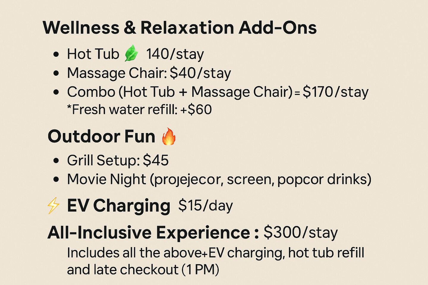 Check-in: After 4:00 PM and Check-out: before 11:00 AM Early Check-Ins: Can't wait to start your getaway? You can request an early check-in within 2 days of your arrival. While we can't guarantee it, we'll do our best to accommodate. If available, early check-ins are $10 per hour until the regular check-in time. Please note, no early check-ins before 11:00 AM. Late Check-Outs: Not ready to say farewell? Request a late check-out within 2 days of your departure. We'll try to make it happen, but it's not always possible. If approved, late check-outs are $10 per hour past the regular 11:00 AM check-out time, with a maximum extension until 2:00 PM. Unapproved late check-outs may result in additional fees. This strict rule is put in place to give the cleaners enough time to clean the property and replenish supplies before the next guest arrives. For your peace of mind, the property is equipped with A/V surveillance, including a Ring Doorbell at the front entrance and cameras outside above the garage and in the backyard. Rest easy—there are no cameras inside the house. Please also note that mailing packages to this address isn't allowed, and we're not responsible for any mail/packages or belongings left behind by guests. Weather and Other Acts of Nature: While we can't control the weather, we're committed to ensuring your comfort! Unfortunately, no refunds will be issued for power outages, water shortages, flooding, construction at nearby properties, or mandatory evacuations due to hurricanes or other acts of nature. If you notice anything amiss, please notify us within 24 hours of checking in, and we'll do our best to resolve it as quickly as possible. 🎉Premium Upsell Features🎉 ✨️Massage chair and Hot Tub SPA services.✨️ ⚠️ AMENITY USE DISCLAIMER Massage Chair & Hot Tub By using these amenities, you agree to the following: 🚨 Use at your own risk. 🧠 Consult your doctor before use if you are pregnant, have a heart condition, high blood pressure, or other medical issues. 👶 Children must be supervised at all times in the hot tub. 🚫 Massage chair is for ages 16+ only. 🧼 Use responsibly. Do not use while under the influence of drugs or alcohol. 💼 You accept full responsibility for any injury or damage. 🛑 The property owner/host is not liable for any harm or loss. By using the massage chair or hot tub, you agree to these terms. Always excited to welcome you to our home. Please Enjoy Every Moment!